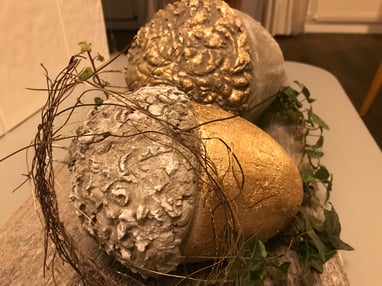 Mit modernem Glasfaserbeton modellieren sie zwei unterschiedlich grosse Eicheln aus Beton. Diese können anschliessend bemalt werden.